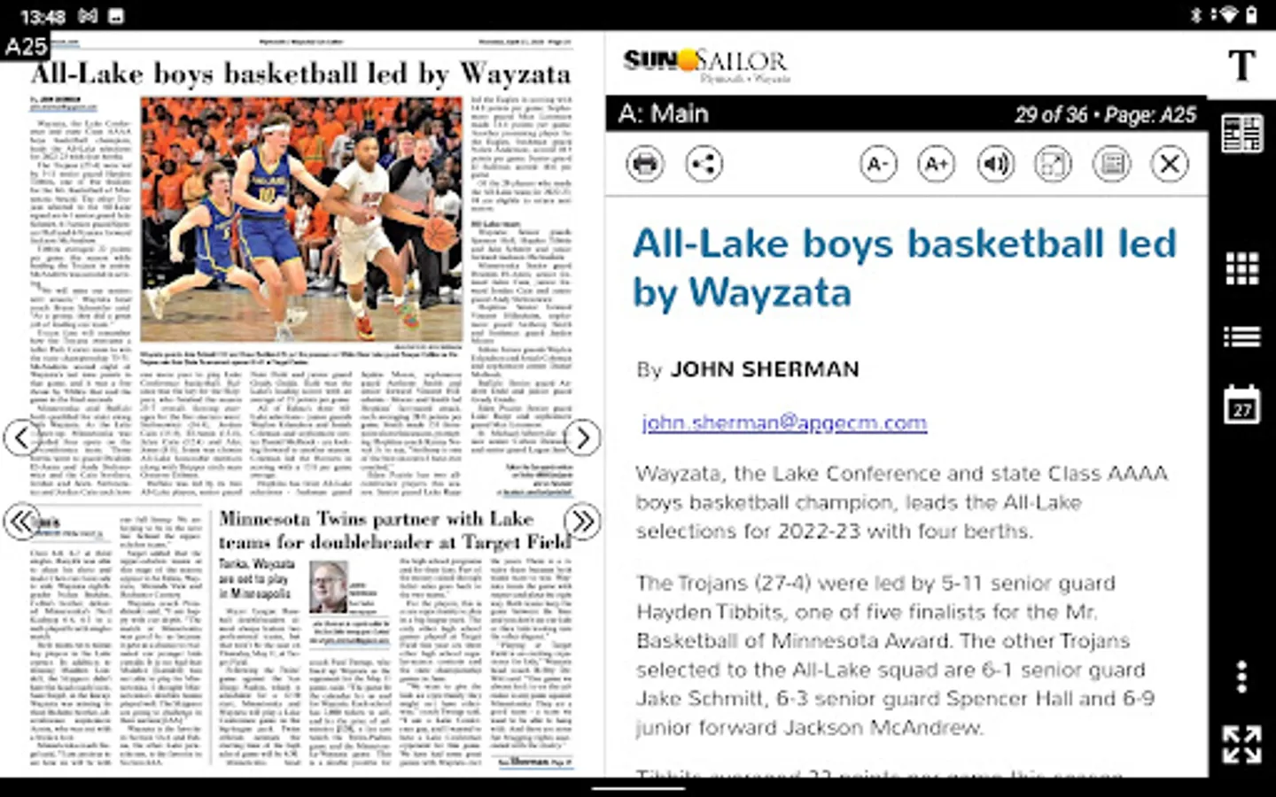 This is a digital replica of the printed Plymouth-Wayzata Sun Sailor. This app is part of your all access subscription. If you have questions about using the app please call Customer Service at (763) 712-3544.