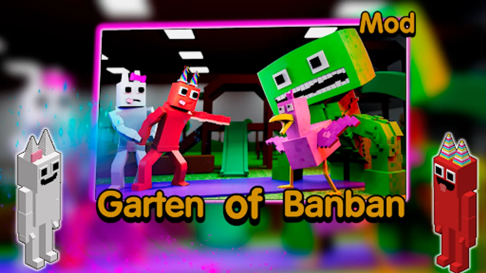 With this mod you can spawn and encounter Garden of Banban boss characters. This mod will be very exciting if you play with those horrible monsters from the banban garden. Have fun with your friends and play role playing games using garten of banban skin for mcpe where you can become characters from garten of banban for minecraft.
