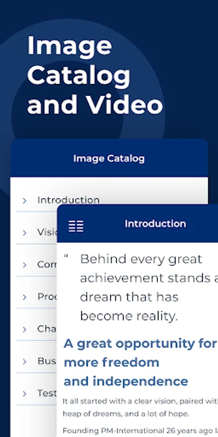 Image Catalog - our image brochure is here! No more paper catalogs and computers with videos. The Catalog is available offline. Present PM-International to any person any time!