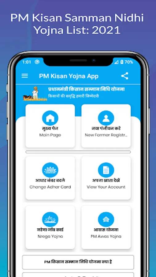 ✦ In India, it has been announced to give 6000 ₹ annually to all farmers under the PM Kisan Samman Nidhi Yojna. This app is made for new farmer registration, check your village name list and many more. This app is beautifully designed for best user experience, we have implemented less ads. Although this is not official PM Kisan Yojna App but user can easily get access to all features of PM Kisan Samman Nidhi Yojna App.