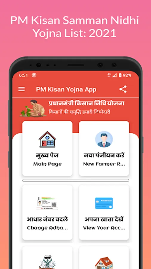 ✦ In India, it has been announced to give 6000 ₹ annually to all farmers under the PM Kisan Samman Nidhi Yojana. This app is made for new farmer registration, check your village name list and many more. This app is beautifully designed for best user experience, we have implemented less ads. Although this is not official PM Kisan Yojana App but user can easily get access to all features of PM Kisan Samman Nidhi Yojana App.