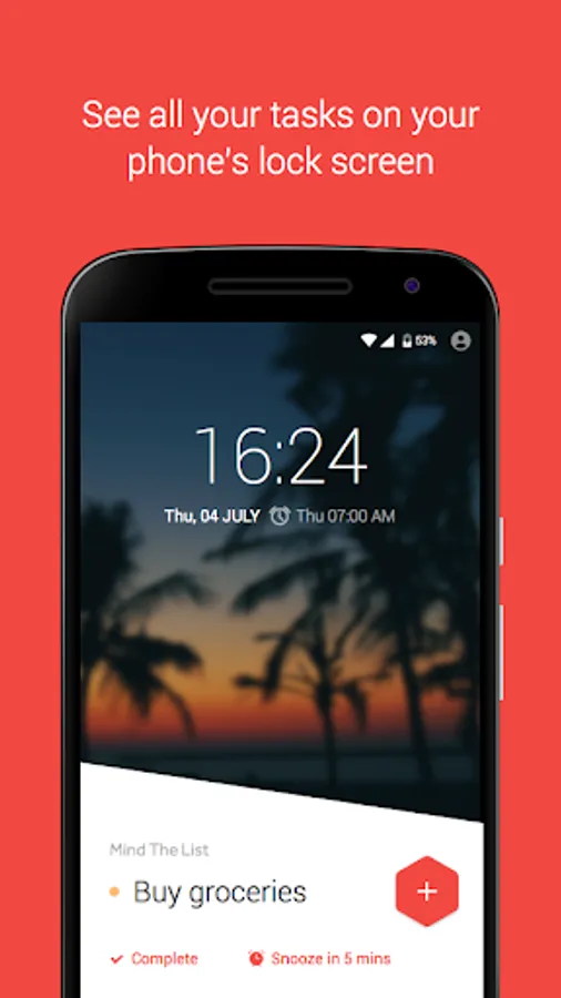 Once you a complete a task, Simply turn on your screen and check the task off. No need to unlock your phone and get distracted. Mind the list helps you stay focussed, organised and reduces the time you spend on your phone.