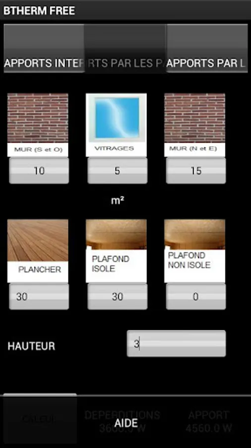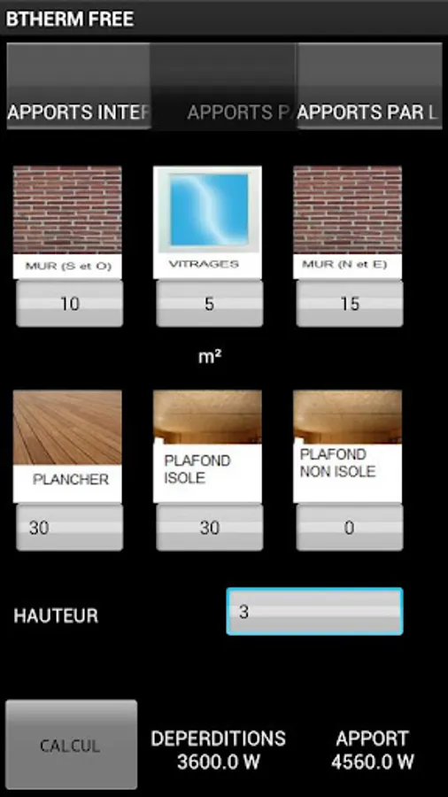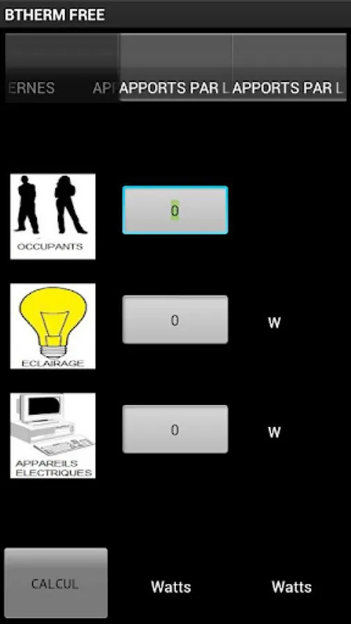 Simplified heat balance for a local to determine the contributions and losses from internal inputs, contributions related to transmission of the outer walls and the radiation through the glazing.