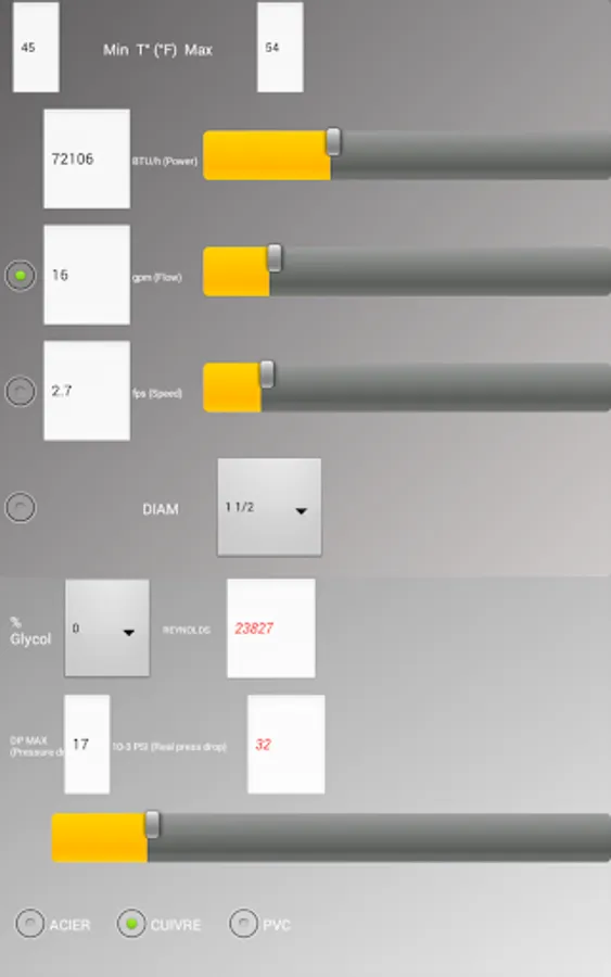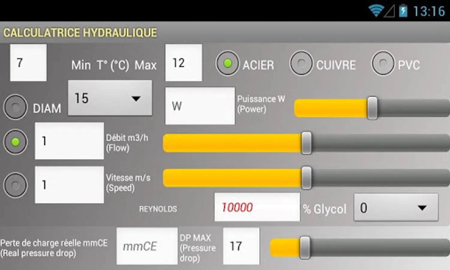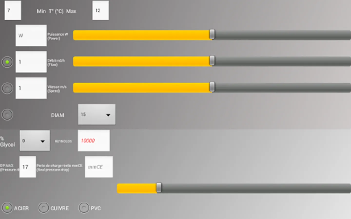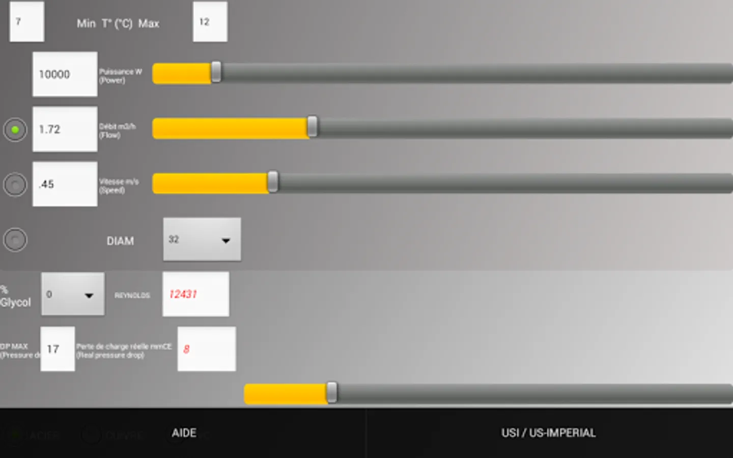 Hydraulic Calculator to determine the diameter, speed and singular load losses of a hydraulic network. Data input: flow in m3 / h or gpm or power in W or Btu / hr with temperature regime in ° C or ° F.