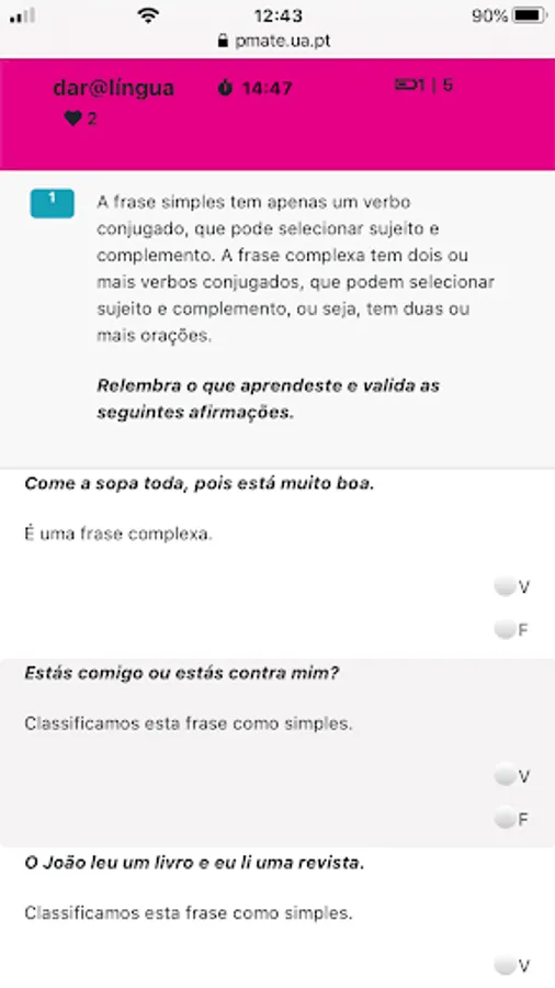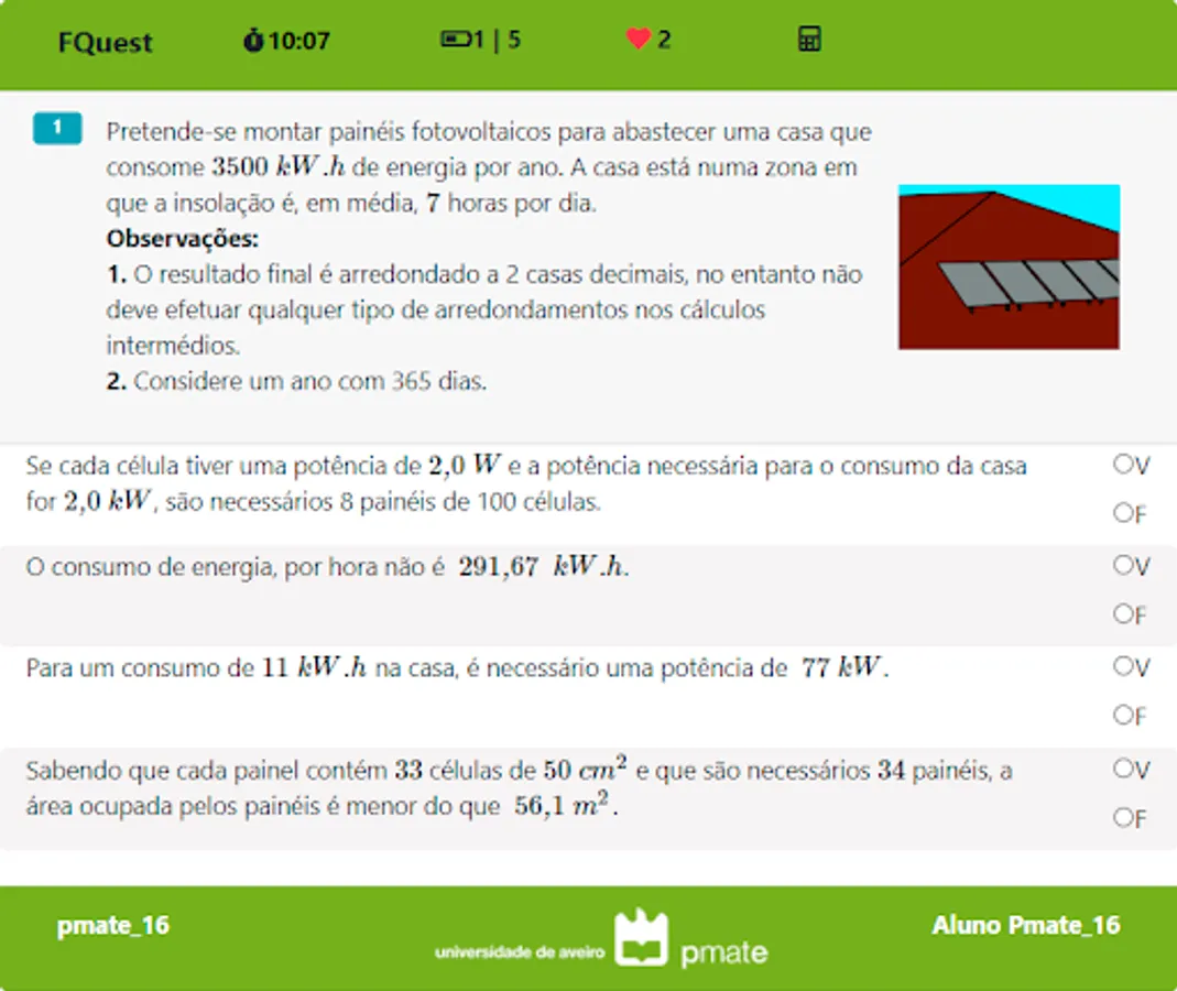 PmatE is a free web platform that has contents from the 3rd to the 12th year and that allows students to test knowledge of various categories, in a manner similar to a game, being thus more appealing. Developed by the University of Aveiro, it has two National Science Competitions per year, in which participants can win prizes!