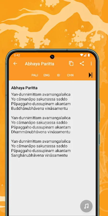 Buddhist application which contains a collection of parittas and their use in Pali and Indonesian languages.