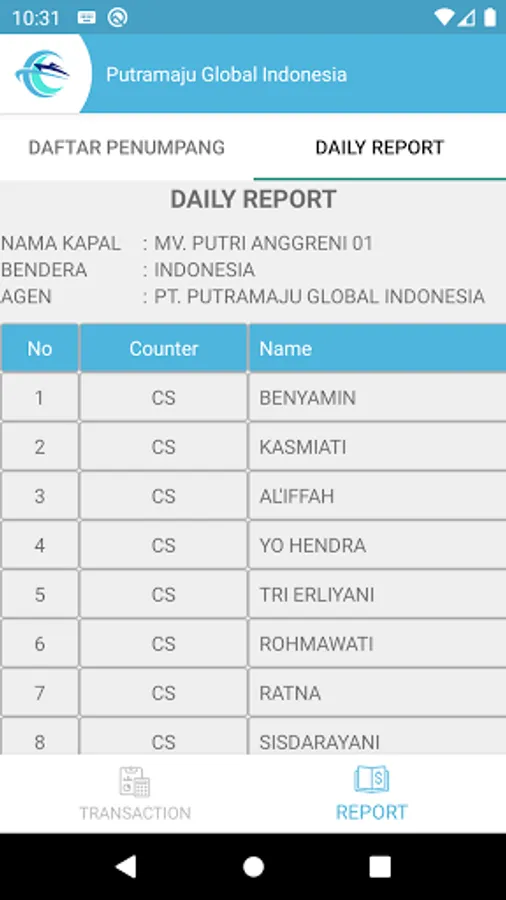 Daily transaction monitoring can be monitored in real time. This application is internally owned by PT. Putramaju Global Indonesia which currently operates in Batam, Tanjung Pinang, Anambas, Uleelheue Aceh and Sabang.