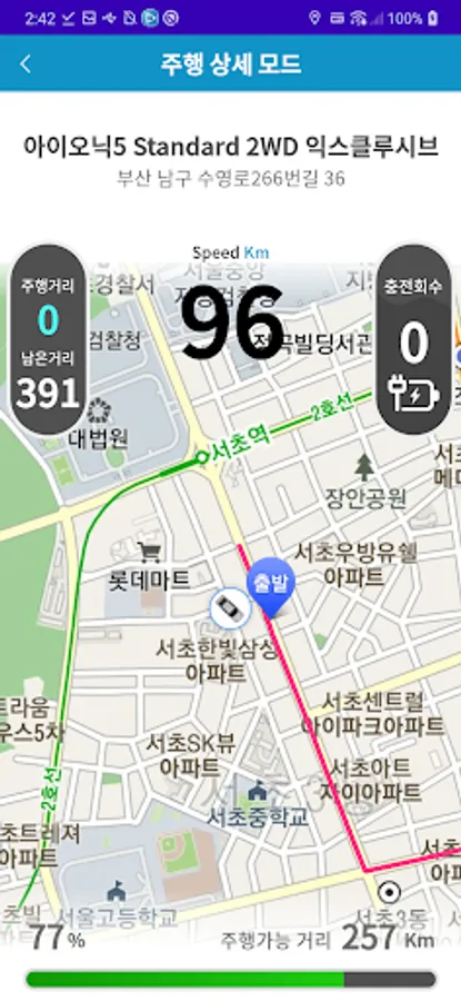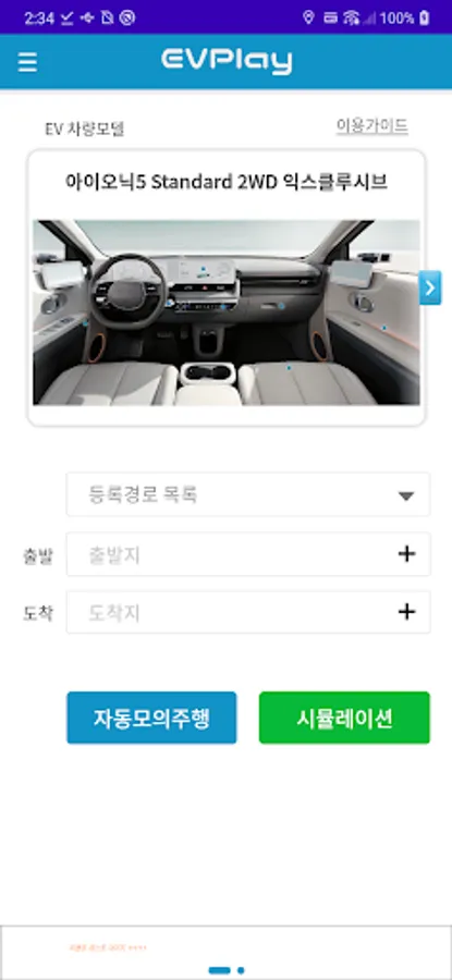 Select a virtual EV and simulate the route from the starting point to the destination you want to drive, the mileage, the battery level, the number of times of charging, and the charging rate.