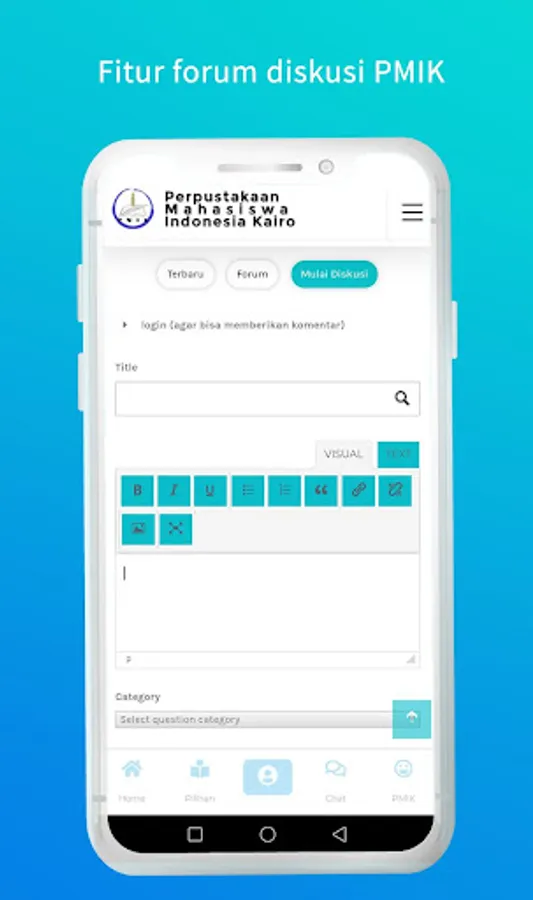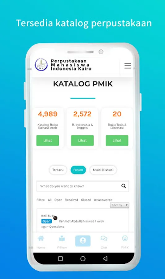 Application catalog of the Indonesian Student Library in Cairo (PMIK) is an application presented by the management of PMIK 2019/2020 in collaboration with ESI (Egypt Student Information) as the application developer.