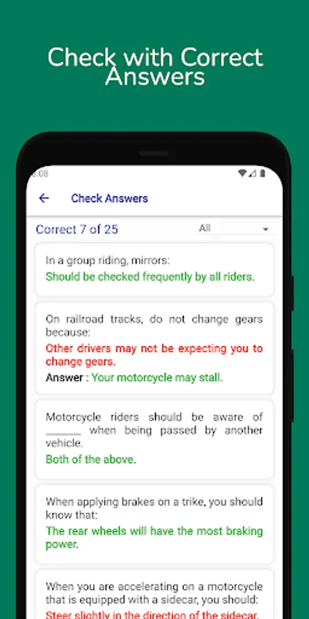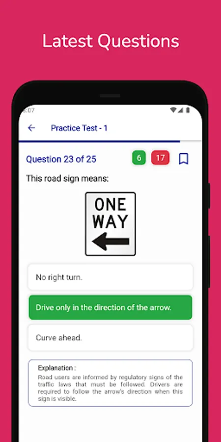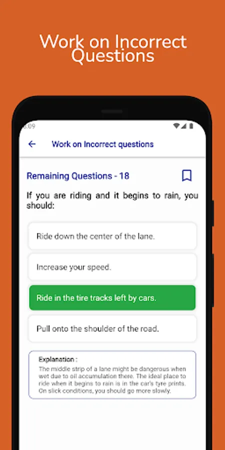 Keep track of your performance on practice exams. The practice test has a lot of questions to help you get ready for your driving, motorcycle, and CDL license exams. simple, uncluttered user interface.