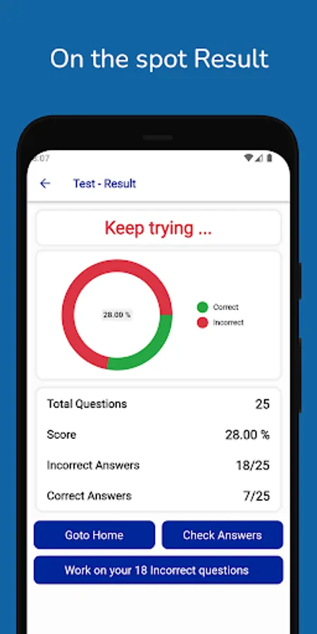 Take the practice exams at your own pace, and never worry about losing your place again with the option to resume unfinished tests. Bookmark the questions you need to review later, or focus on your areas of improvement by working on all the incorrect questions.