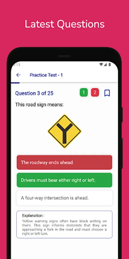 Keep track of your performance on practice exams. The practice test has a lot of questions to help you get ready for your driving, motorcycle, and CDL license exams. simple, uncluttered user interface.
