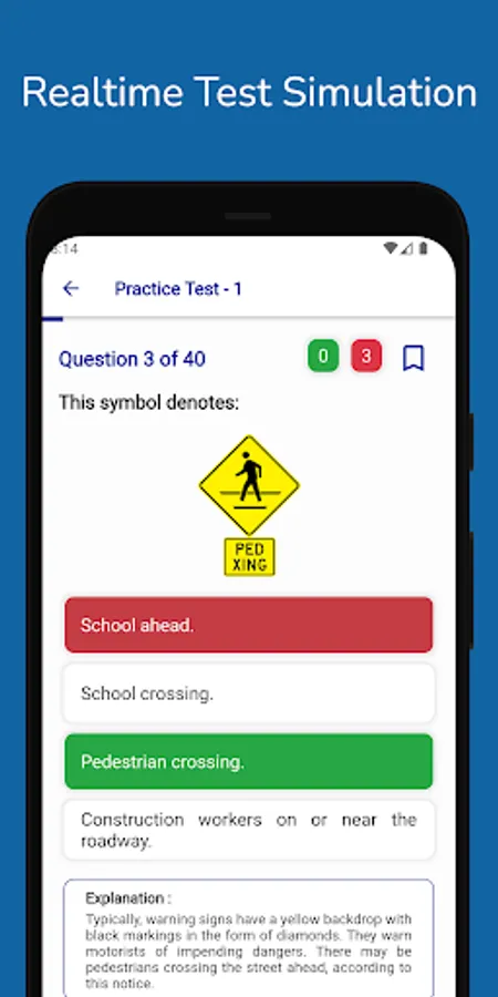 Keep track of your performance on practice exams. The practice test has a lot of questions to help you get ready for your driving, motorcycle, and CDL license exams. simple, uncluttered user interface.