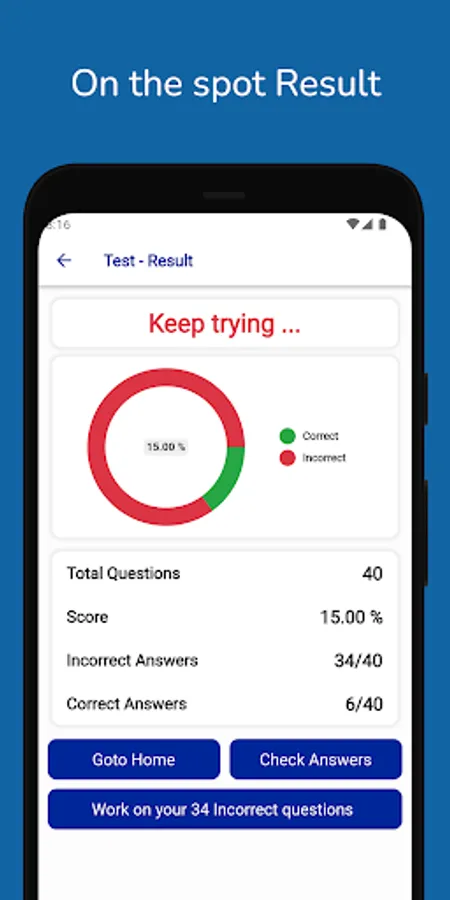 Take the practice exams at your own pace, and never worry about losing your place again with the option to resume unfinished tests. Bookmark the questions you need to review later, or focus on your areas of improvement by working on all the incorrect questions.