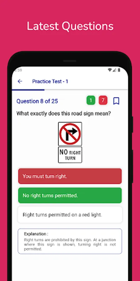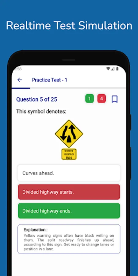 Keep track of your performance on practice exams. The practice test has a lot of questions to help you get ready for your driving, motorcycle, and CDL license exams. simple, uncluttered user interface.