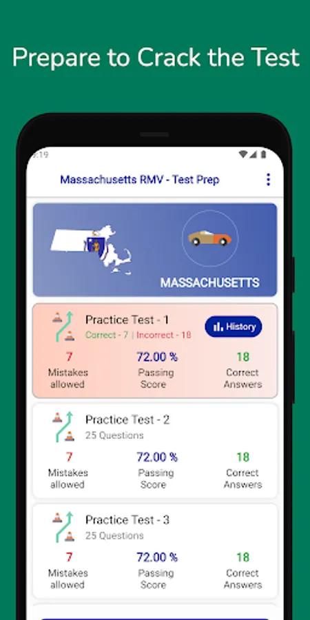 Do you intend to take the Massachusetts MA RMV permit exam? You can use this app to successfully pass the DMV permit test in Massachusetts.With a focus on road signs, traffic laws, and vehicle operations, this app covers all the essential information you need to know to succeed on the permit exam.