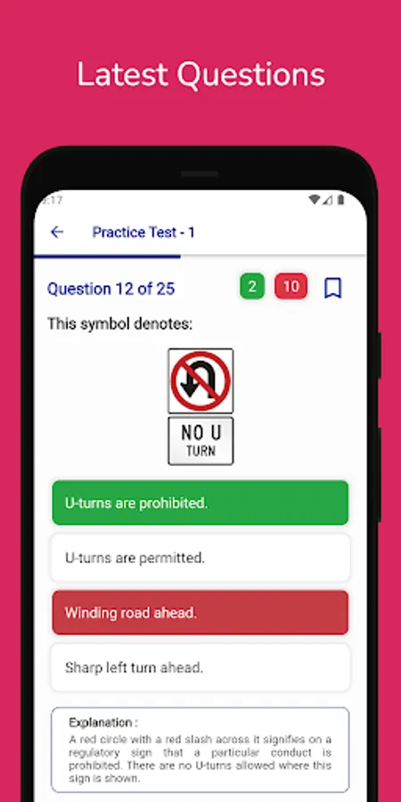 Keep track of your performance on practice exams. The practice test has a lot of questions to help you get ready for your driving, motorcycle, and CDL license exams. simple, uncluttered user interface.