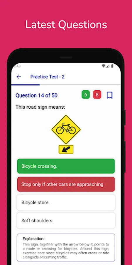 The app features all the practice tests you need to prepare for your car, motorcycle, or CDL license exams, with over 1000+ questions and explanations to help you get up to speed.