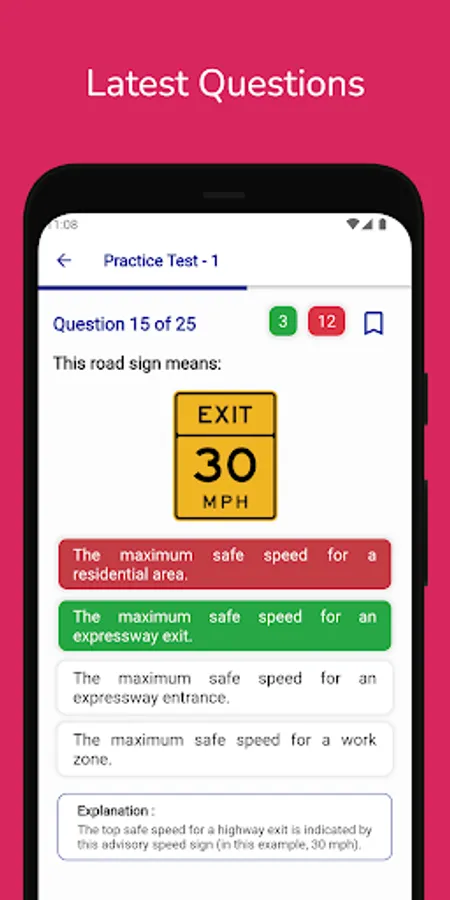 Keep track of your performance on practice exams. The practice test has a lot of questions to help you get ready for your driving, motorcycle, and CDL license exams. simple, uncluttered user interface.