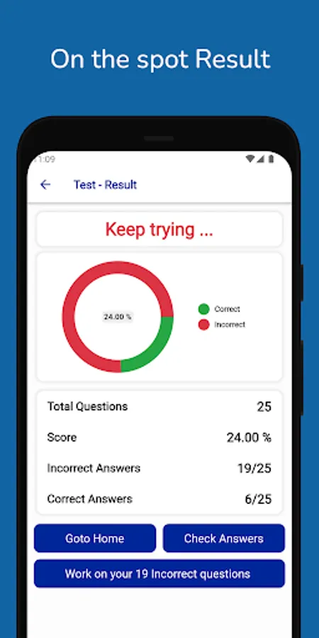 Take the practice exams at your own pace, and never worry about losing your place again with the option to resume unfinished tests. Bookmark the questions you need to review later, or focus on your areas of improvement by working on all the incorrect questions.