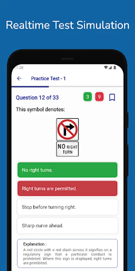 Keep track of your performance on practice exams. The practice test has a lot of questions to help you get ready for your driving, motorcycle, and CDL license exams. simple, uncluttered user interface.