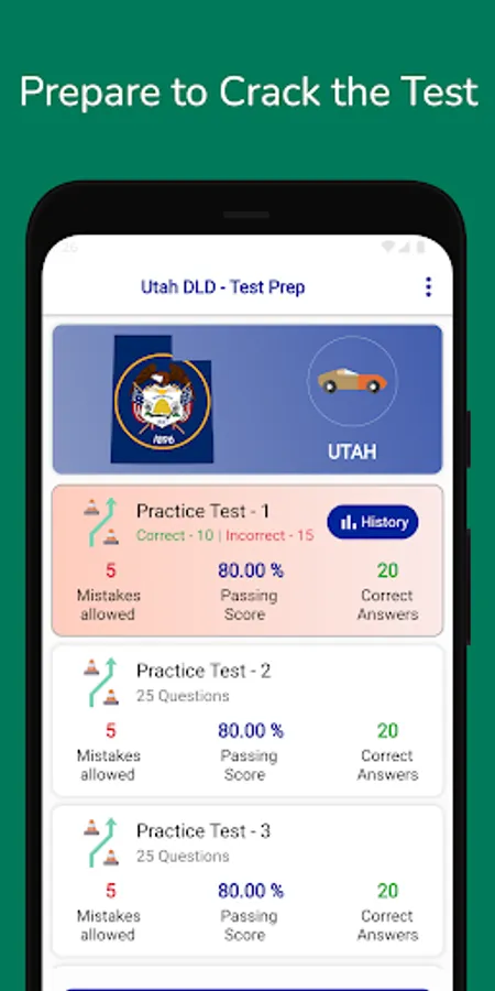 The Utah DLD permit test was considered when developing this app. It makes DMV exam preparation quick and easy. It can be used to speed up studying or as a study guide. This app gives you questions and answers that you can use to improve your score.