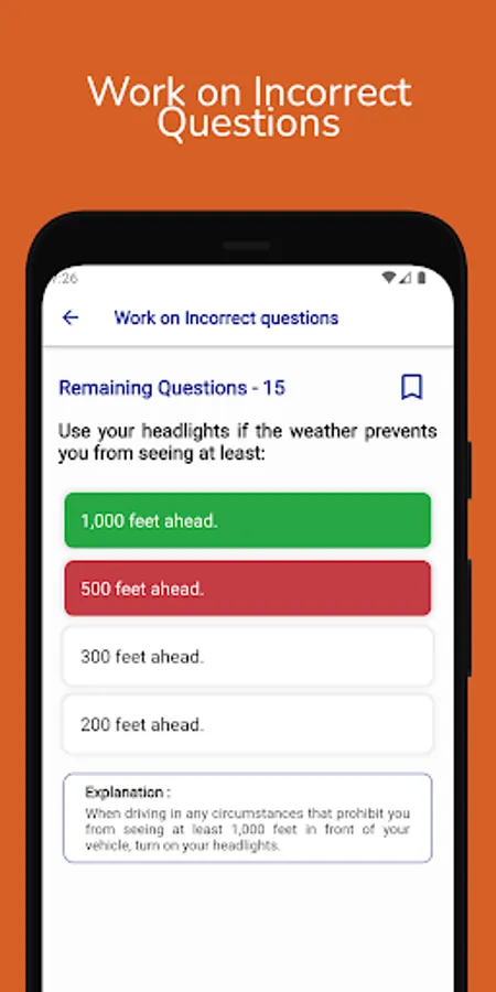 Take the practice exams at your own pace, and never worry about losing your place again with the option to resume unfinished tests. Bookmark the questions you need to review later, or focus on your areas of improvement by working on all the incorrect questions.