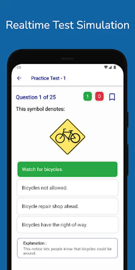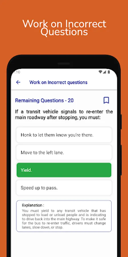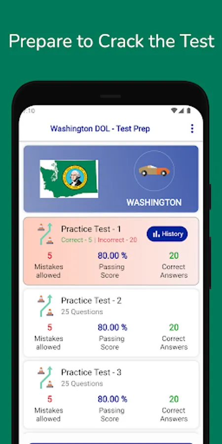 Keep track of your performance on practice exams. The practice test has a lot of questions to help you get ready for your driving, motorcycle, and CDL license exams. simple, uncluttered user interface.