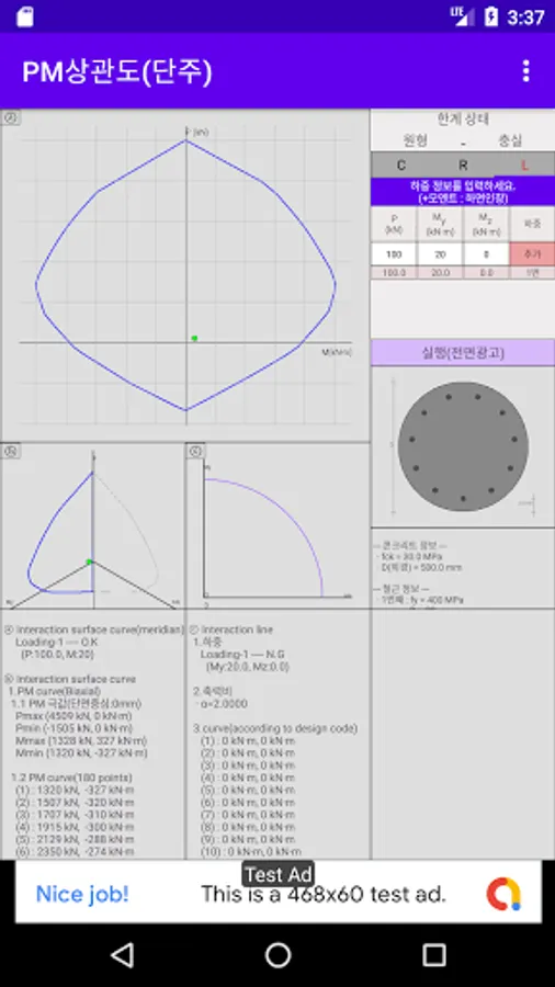 It is a PM correlation drawing app for circular and square sections, and supports limit state and strength design method. It is not yet perfect, there may be errors, and contains advertisements that can be offensive. We hope that you will use it as a reference, and it is not appropriate to apply the results of this app to your design. There are many errors, but if you input it well, you will get a somewhat similar value.
