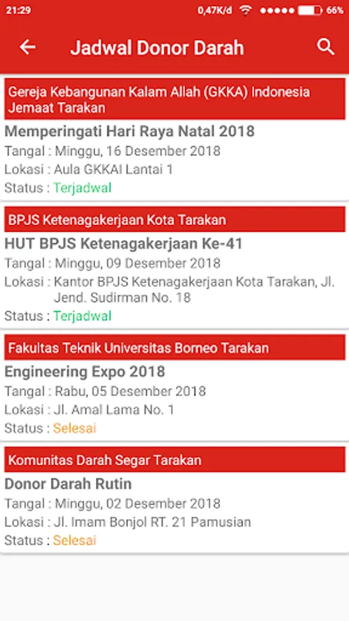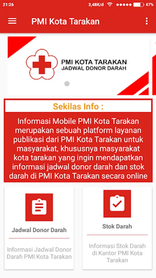 Mobile Information Application PMI Tarakan City is a publication service platform from PMI Kota Tarakan for the community, especially the people of Tarakan city who want to get information about PMI, blood donor schedules, and blood stock at PMI Kota Tarakan online.