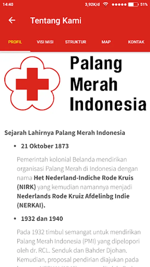 PMI always has seven basic principles of the International Movement of the Red Cross and the Red Crescent, namely humanity, equality, volunteerism, independence, unity, neutrality and equality. Until now PMI has been in 33 Regional PMIs (provincial level) and around 408 PMI Branches (city / regency level) throughout Indonesia.