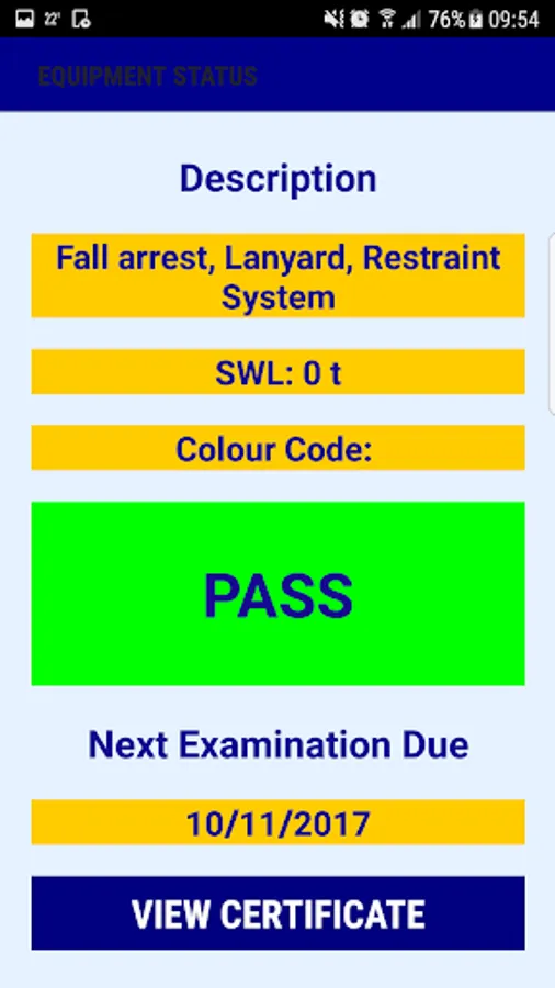 An Android application for Rossendale customers. The app allows them to scan a bar-code or enter an asset number for a piece of equipment. It gives general information, safety status, certificate expiry date and the option to view the certificate if necessary.