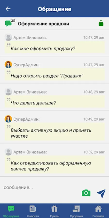 Register sales, participate in promotions, redeem points for prizes, read company news and instructions, ask questions in the chat and much more!