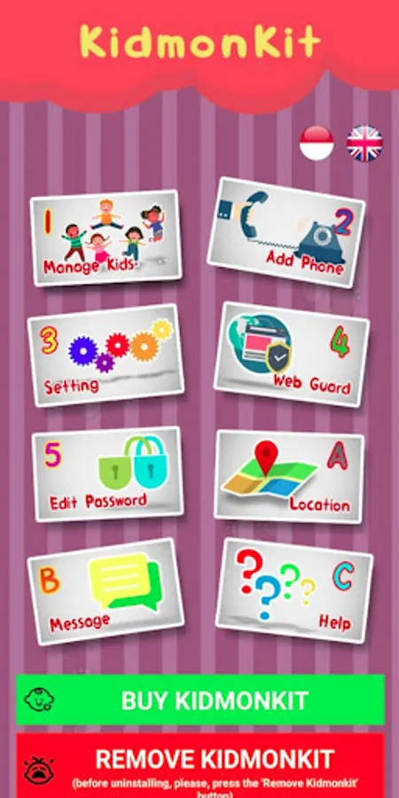 Install KidMonKit - Parent on a parent's smartphone, and install KidMonKit on a child's smartphone. You can :