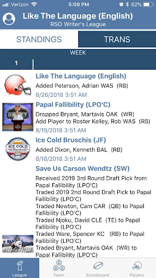 - League Info - See how your team stacks up in your league and who's making the latest roster moves