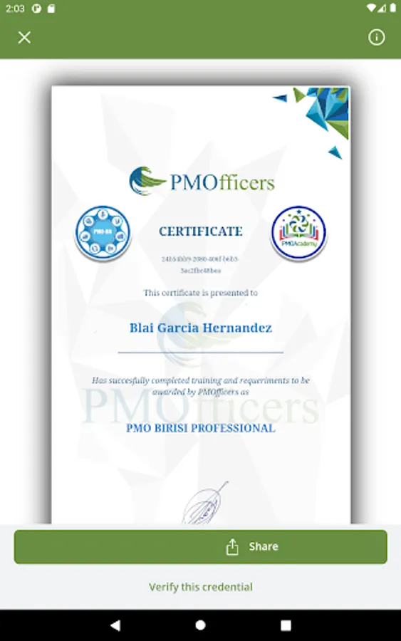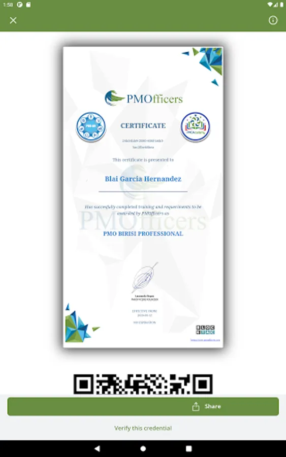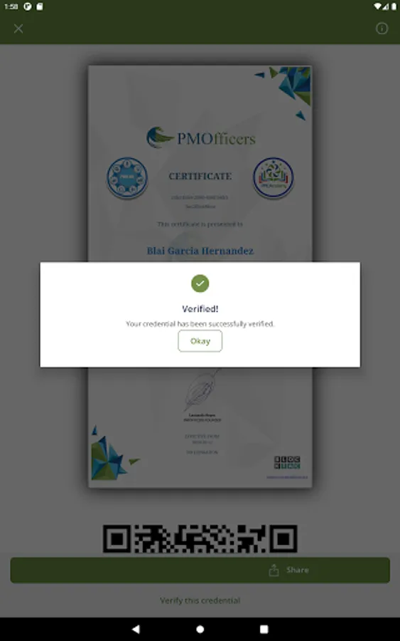 This is a wallet to contain all the Diplomas and Certificates you have. For example, your University Diplomas. Or your Insurance Certificates. Or your membership card iDs. This app allows you to share the data with whoever you wish, in a number of easy and fast ways, using third party applications. Also, you can prove your claims by letting the app check the digital signature of your certificates with the hash stores in Blockchain, making them unforgeable.