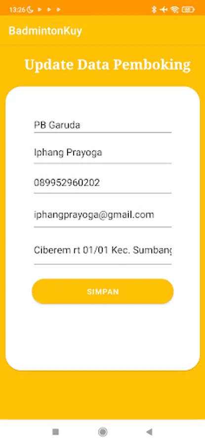 Badmintonkuy is an application for recording badminton court bookings, manual bookings have many shortcomings in organizing, such as when adding data, searching for data, and many other shortcomings and with this application all these problems can be resolved because this application provides many features to help users organize booking records in order to improve the quality of service, with many features that can be used by users, this application is very helpful for users in the effectiveness of record management, this application has a booking data input feature, updates booking data, deletes booking data, and searches booking data. This application is very useful for badminton court owners because it can improve the quality of service.