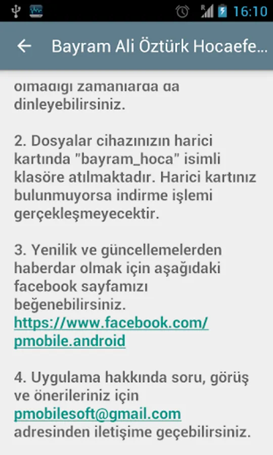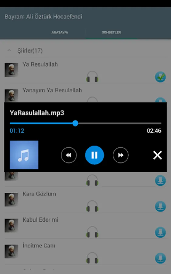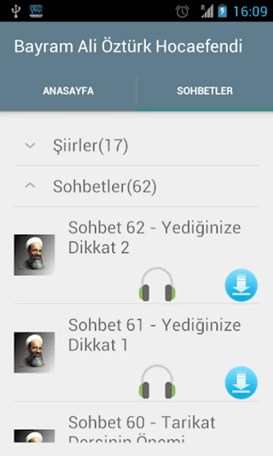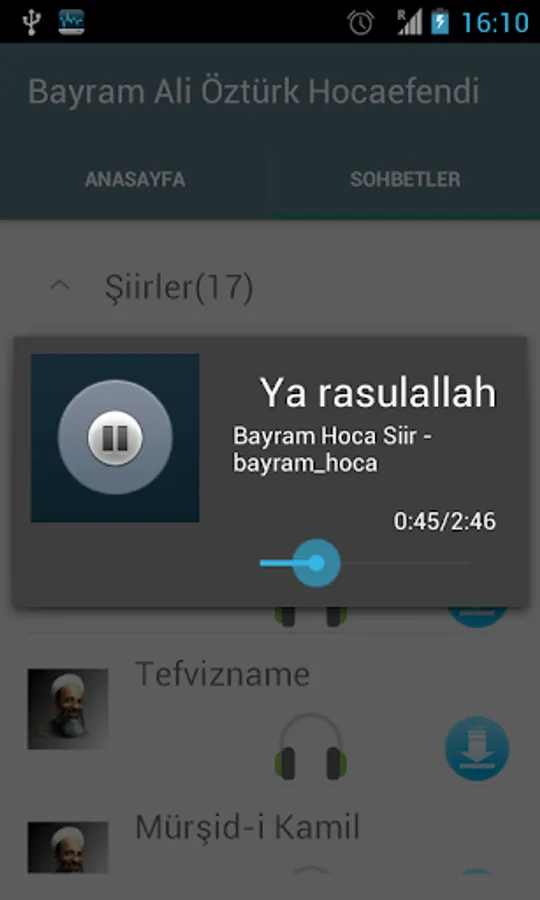 Bayram Ali Öztürk Martyrs Effendi application that you can download and listen to their conversation.