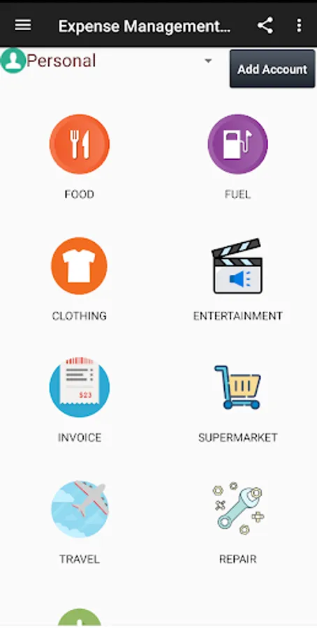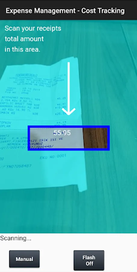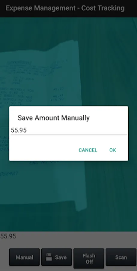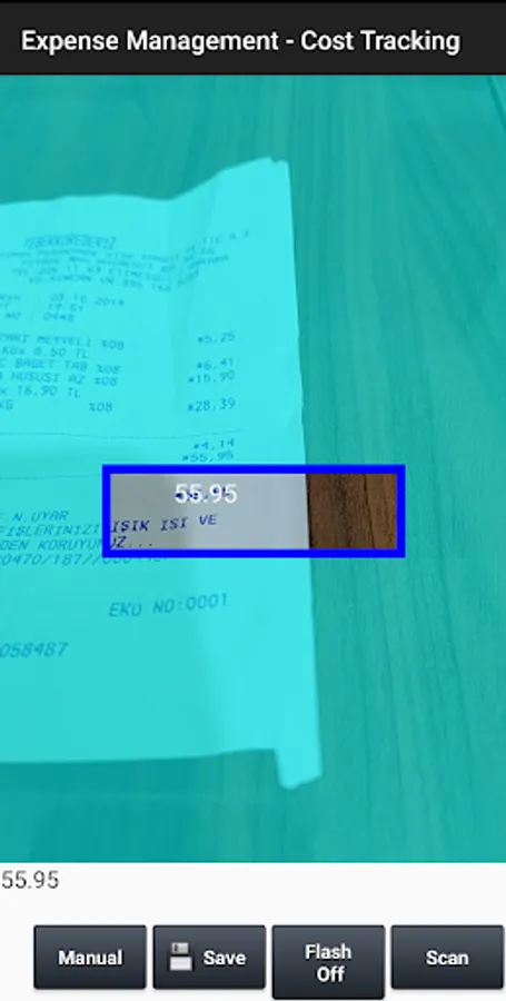 Scan receipt total amount and use "SAVE" button to save it. The expense will be saved to current selected account.