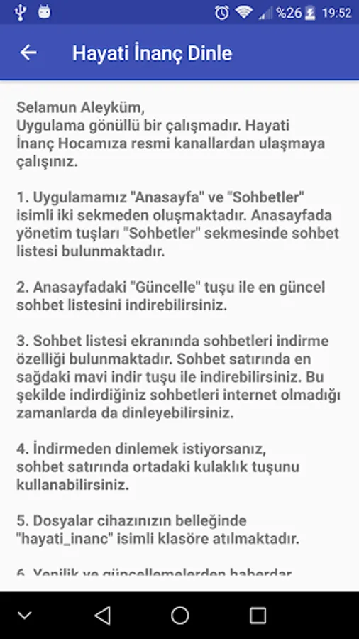 Hayati Faith is an android application that you can listen to our teacher's chats.