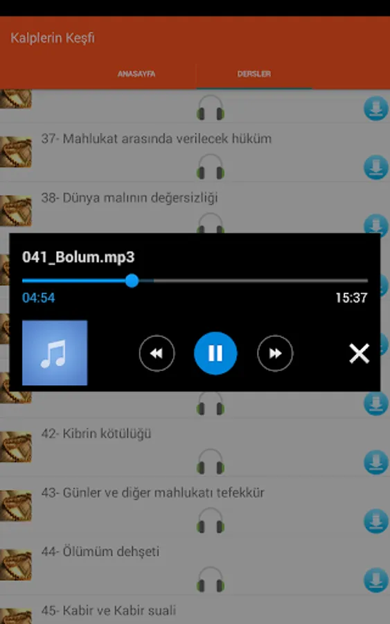 --Dinlediğiniz bölümleri indirebilirsiniz. Böylece o bölümü internet bağlantısı olmadan da dinleyebilirsiniz.