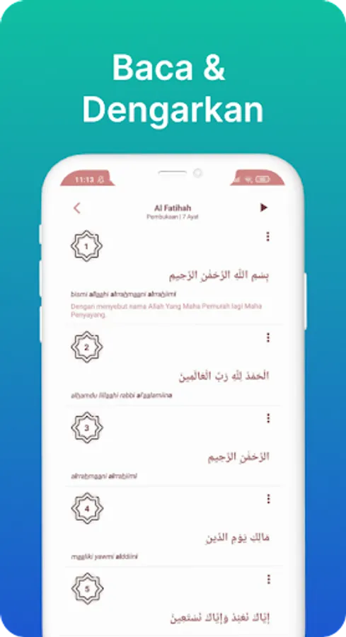 In this Al-Quran application, you can read the Koran or with audio play mode to know how to read the Koran. And tap a verse to hear a verse by verse.