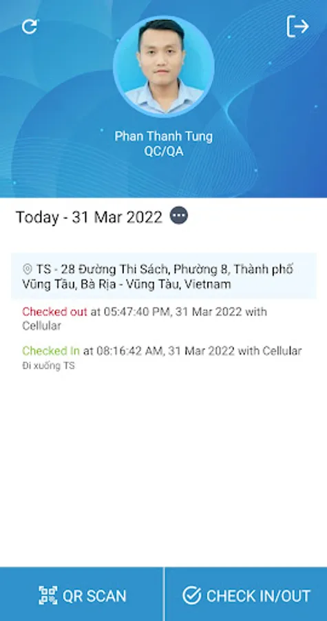 (2) Tap "Check In" or "Check Out" on bottom of the screen