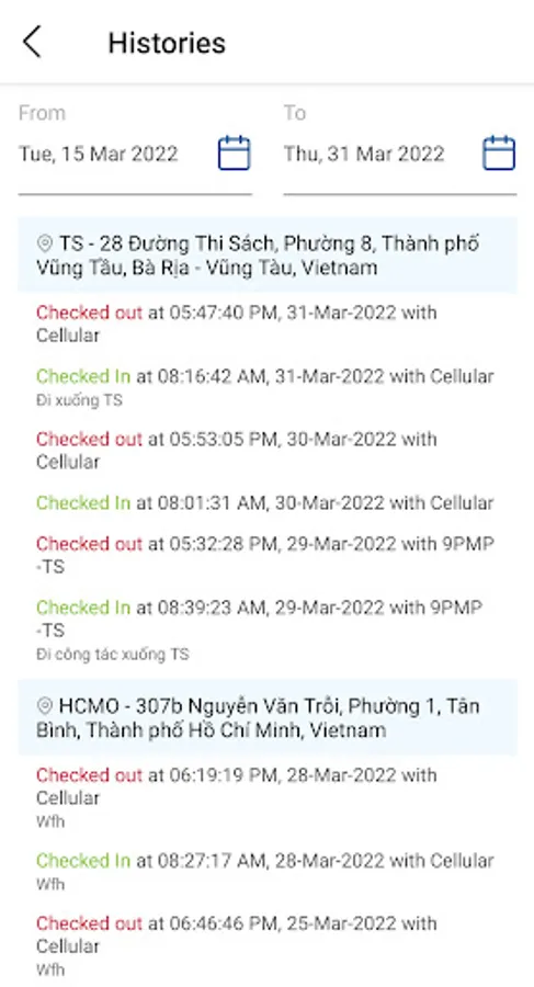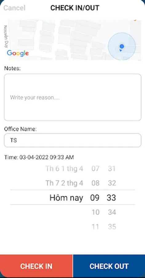 Employees can add their time spent on each tasks by selecting the specific location