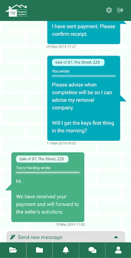 We will notify you when a significant step is made and you can contact us with any queries through the app, as well as send us files relating to your transaction.
