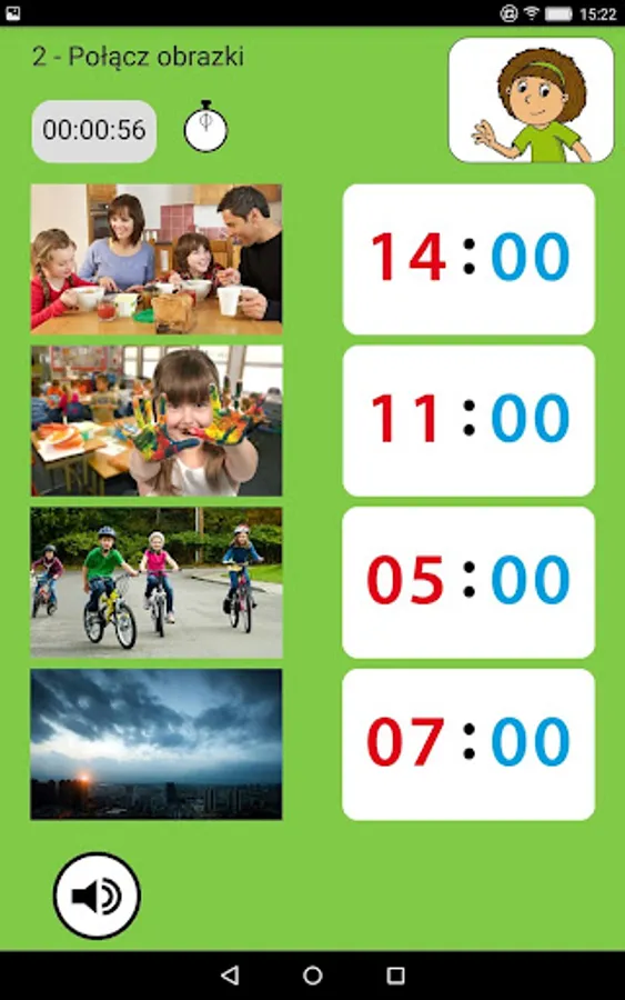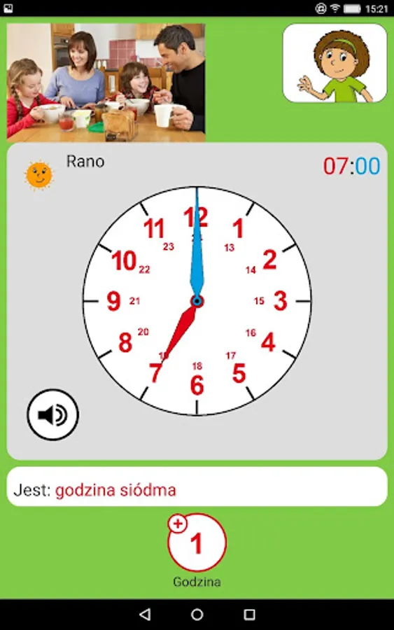 2.2 "Try" (Children move the pointer on the dial, and at each hour a photo will appear, e.g. breakfast, going to school, schooling, dinner, etc.)