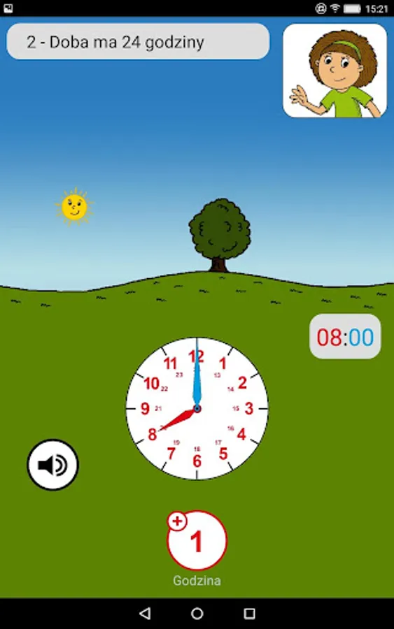 2.1 Learning: A day has 24 hours (in one day the hour hand will go around the dial twice, the day / night will change when you move the hands)