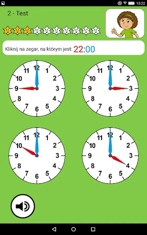 - 4 dials will appear and the task is to indicate the clock, which shows e.g. 11:45.