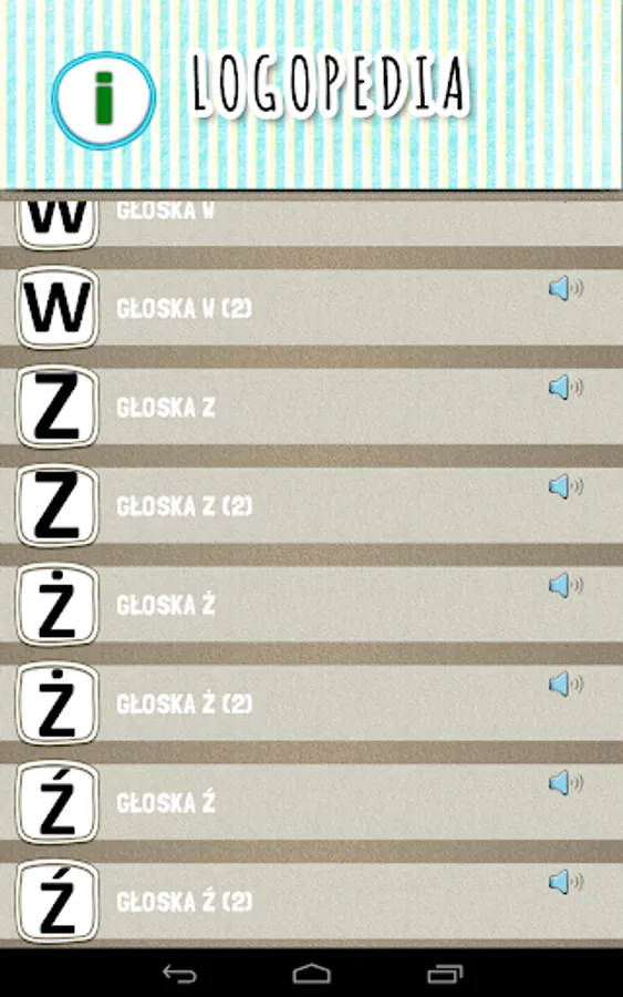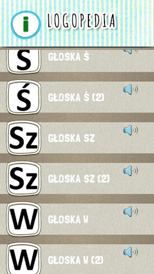 The speech therapy application contains articulation exercises for children at the stage of syllables, words, word associations and sentences for individual sounds. It can also be used when working with adults.