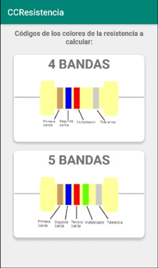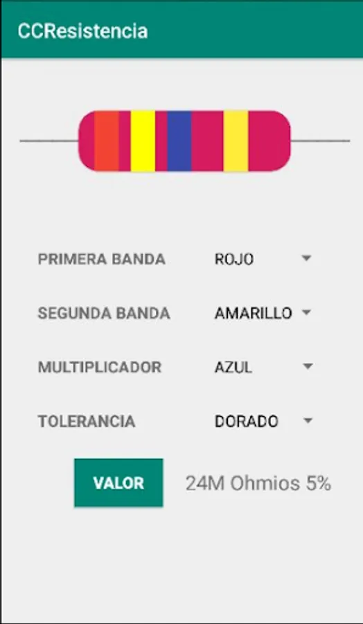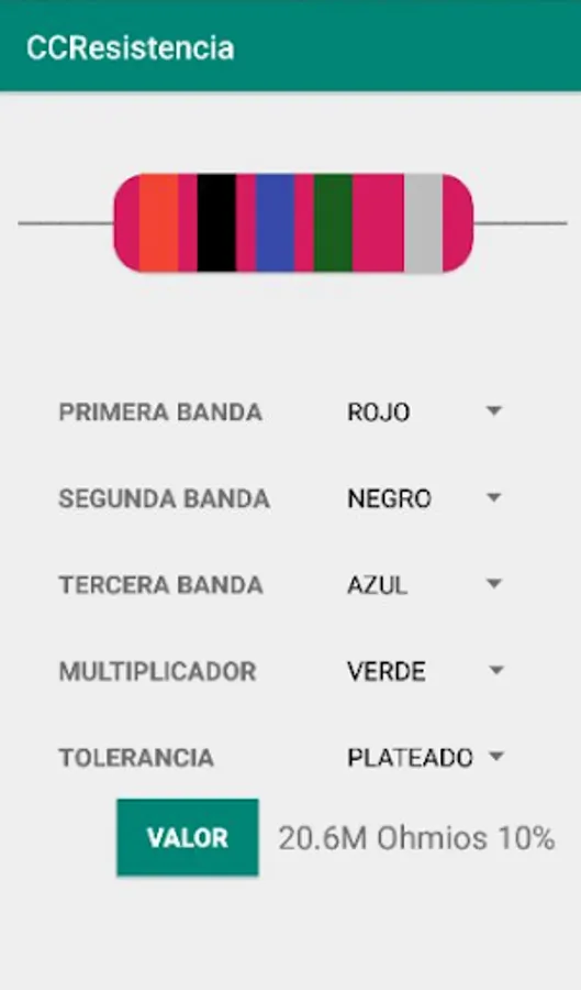 It allows to see the value of the resistance with respect to the colors of the bands that you select, you can choose the resistance of 4 bands or the resistance of 5 bands